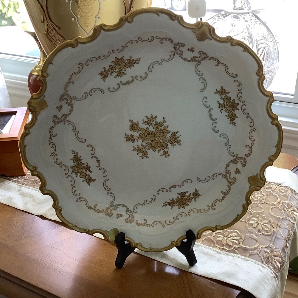 Reichenbach Germany Serving Plate Embossed Gold Floral & Intricate Scallop Rim 12.5”