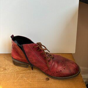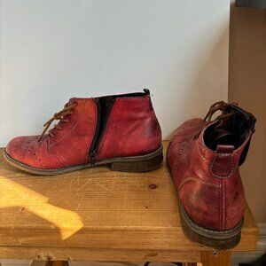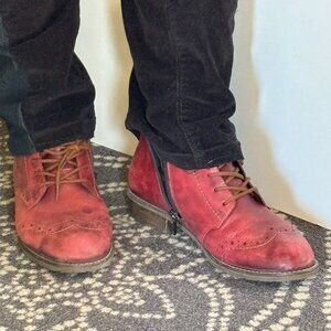 Rieker distressed red leather chukka bootie with inside zip and laces.