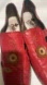 Reiker vintage Red Leather Slip-Ons with 3d flower. Antistress comfort walking