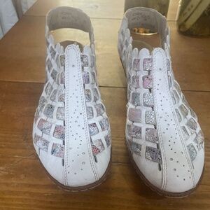 Bought for my wedding! Worn once. Absolutely love them. So comfortable, leather. Does not feel like you are wearing a heel at all.