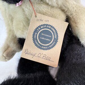 New with tags, fully jointed, a cream and black coloured Reilly O' Pigg from the J.B Bears Investment Collection. He is 16 inches tall from his toes to the top of his ears. He is full of beans. His serial number 5538-07. Made of a soft plush material. He is very cuddly. He has pink embroidered nostrils. He is new old stock, now retired and harder to find. I also have other plush available.