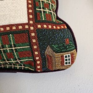 Reindeer Tapestry Throw Pillows Set Of 2 Christmas Tree Red Plaid 14" Velvet