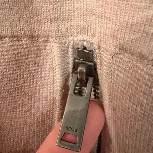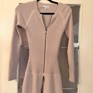 Elegant cream dress with ribbed texture. Features a sleek front zipper. Size small.
