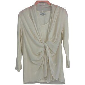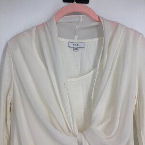 Reiss Ivory Tie twist Front Chiffon Layered 3/4 sleeve blouse size 0