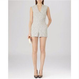 Reiss Jeanette Jaquard Romper in White and Black Speckled Print size 4