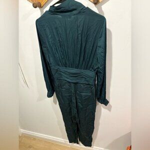 Reiss Kinley Plunge Tie Detail Green Jumpsuit