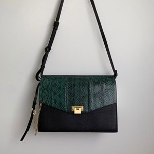 Reiss CONWAY SNAKE LEATHER LOCK CLOSURE SHOULDER BAG - New With Tags