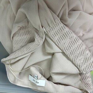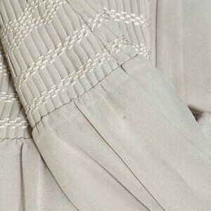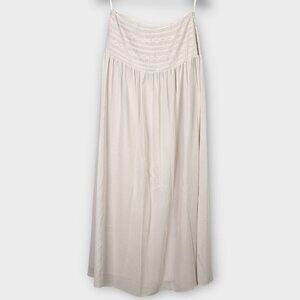 Reiss Strapless Chiffon Maxi Dress. Champagne colour. Pleated and embroidered bandeau top with thin ribbon along top edge. Hidden side zip. Empire waist with loose flow-y chiffon skirt. Fully lined. Materials: 100% Polyester. No known flaws.