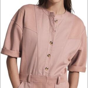 - Reiss emlyn mix media cotton blend pink mini dress new
