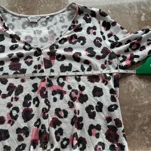 Size XL v neck 3/4 sleeve button up tie at waist 55% viscose 40% polyester 5 elastane excellent used condition