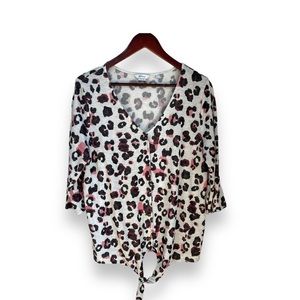 Reitmans 3/4 sleeve v neck button up with tie at bottom of waist size XL