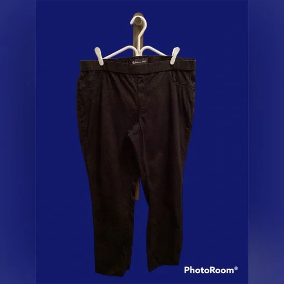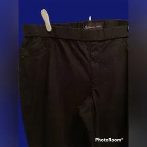 Fashion skinny pant. High waisted worth printed detailing all throughout (more like a metallic spots). 2 front faux pockets, back pockets are actual pockets. Pull on pant so no button or zipper. Ribbed waistline, lots of stretch throughout. Gently used, in good condition. Inseam measures 30”
