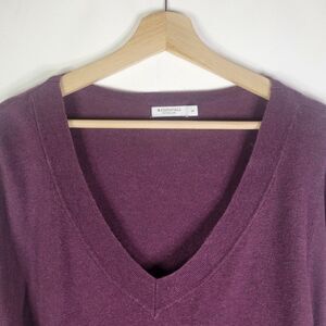 Stay cozy and stylish with this elegant purple V-neck Essentials sweater from Reitmans.