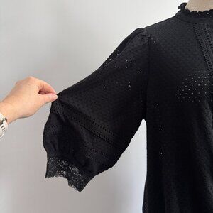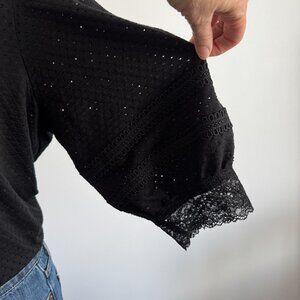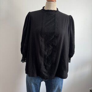 Reitmans - Black Embroidered Shirt - Puffy Sleeves - 3/4 Sleeves Lenght - Excellent pre-owned condition