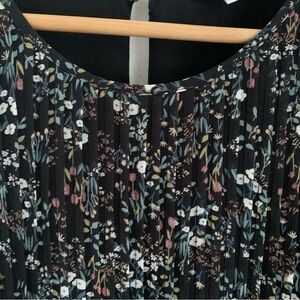 Reitmans Black Floral Pintuck Short Sleeve Dress