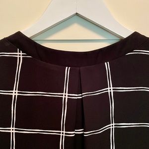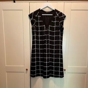 Reitmans black and white V neck short sleeve shift dress in large plaid pattern. Falls just above the knee with A-line tunic style fit. Excellent condition, machine washable. Size Large - fits US size 10-12.
