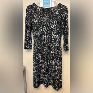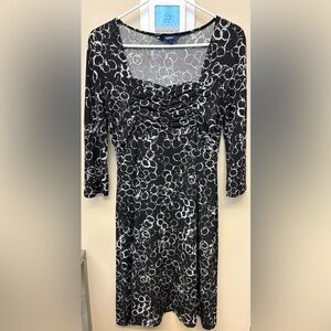 Reitmans Black/White Stretchy Sheath Dress 3/4 Sleeves & Cowl Neck size Small