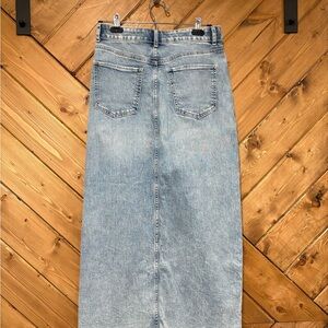 This elegant blue maxi skirt from Reitmans. Crafted with a focus on comfort and style, it drapes beautifully, making it a versatile addition to your wardrobe. Stretchy. Fits larger than a 27, I would say more like a 28. See size chart attached.