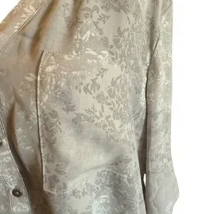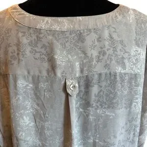 Reitman's silver/mauve button up tunic. 3/4 sleeves. 100% Polyester. Size 14. Shoulder to hem is 28.5".