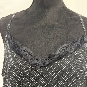 Lace trim detail on neckline and hem Adjustable spaghetti straps Slip on style Lightweight fabric