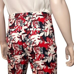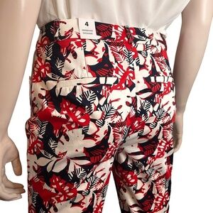 Reitmans Capri Pants Cotton Floral Colourful Bold Print Pockets Red Navy Cropped