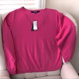 Stylish V-neck sweater. Asymmetrical hem. Soft and comfortable fabric.