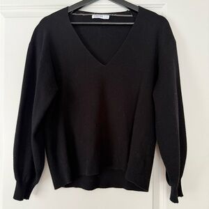 Chic V-neck sweater with a stylish asymmetrical hem. Soft and comfortable for everyday wear.