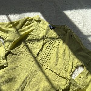 Reitmans Chartreuse Tunic Size Large Petite | Boho Style | Pin-Tuck Blouse |