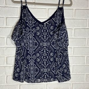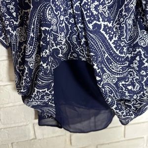 Reitmans spring/summer top that is fully lined featuring a navy blue handkerchief print.