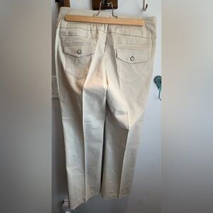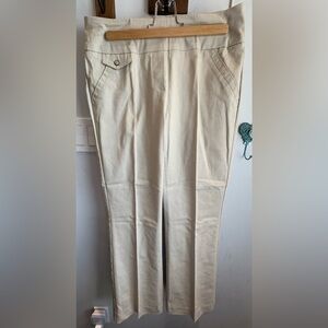 These cream chinos from Reitmans feature a classic straight-leg cut and a tailored look, making them perfect for both business and formal occasions. Crafted from a smooth cotton-blend material, they offer a crisp, structured appearance that pairs effortlessly with various tops.
