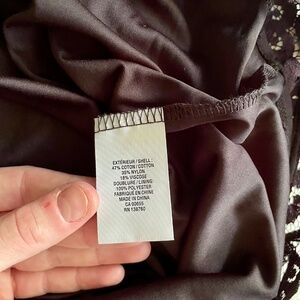 This purple formal dress in a size two from Signature by Reitmans is in great condition - I wore it one time for an awards banquet. The dress has beautiful lace detailing and is lined with soft purple fabric. It's made of cotton and nylon and has as small lace cut out on the upper back of the dress. The dress zips up in the back and the top of the dress above the cut out is securable with a small button.