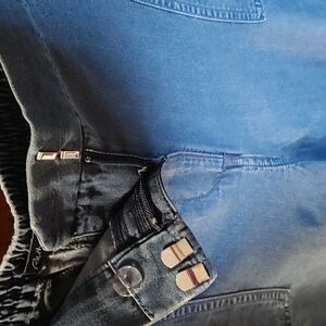 Front zip with both button and metal fastener closures