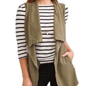 A great layering vest for work or weekend wear, this trans-seasonal vest is a must-have piece. Made from a soft lyocell fabric for a gentle drape, this vest features an open front and drape hemline. 2 real pockets on the front with snap buttons closure. In like-new condition - worn once or twice only! Size Small. Measurements approximate & taken with garment on flat surface: Pit to pit: 17 inches Length: 26 inches Please note that the first photo with the model is not the actual vest - it's a similar vest to show the style and the fit only. There is no such thing as a rude offer, offer what you believe it's worth, I’ll either accept or counter. Remember that you can bundle to save on shipping costs!
