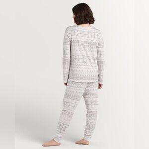 - Long sleeve crew neck top and jogger-style pyjama bottoms sport a light fair isle print.