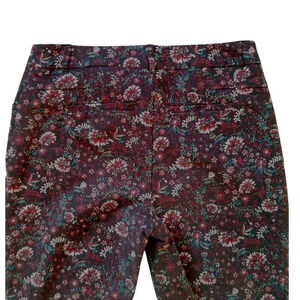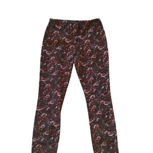 Reitmans Floral Straight Leg Trousers Black Burgundy Stretch 4