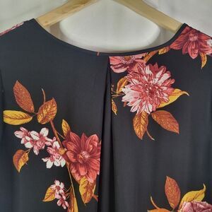 Beautiful colors floral print black midi dress from Reitmans in EUC, like new. 2 layers.