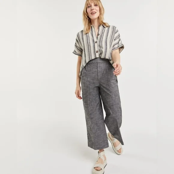 Stylish gray cropped pants. Perfect for casual wear. Comfortable and chic.