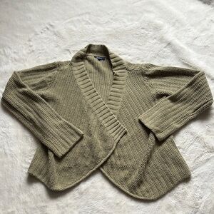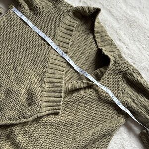 Cozy up in this olive green knit cardigan from Reitmans, featuring a draped open front with a flattering rounded hem and ribbed shawl collar. The chunky knit texture and long sleeves offer a warm and comfortable fit, while the cropped silhouette adds a touch of style to any outfit. Perfect for layering over tees or dresses, this piece works great for fall, winter, or chilly spring days.