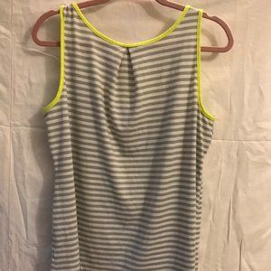 Reitmans grey stripped tank top with wide straps and neon yellow around neck line; size large