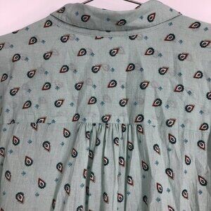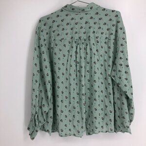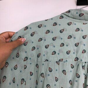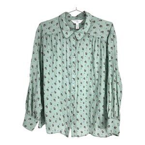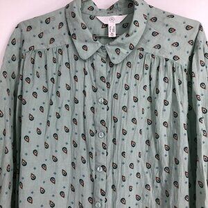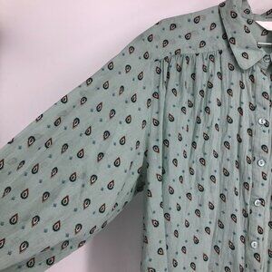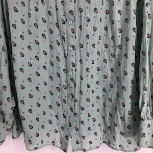 Reitmans Light Sage Green Small Paisley Patterned Button Up Long Sleeve Shirt 2X