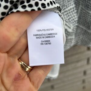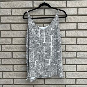 Lovely, lightweight, flowy tank top. Material is blouse-like, fully lined with great black and white print. Pair with a blazer or sweater in the cooler months or wear on its own the the summer, great, versatile tank!
