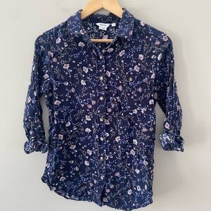 Reitmans Linen Viscose Navy Blue Floral Lightweight Floral Blouse
