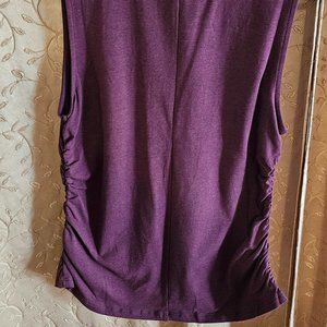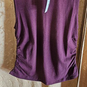 Cute high neck sleeveless top with ruching on the sides. This cute maroon top is flattering on anyone. Size Small, its a perfect top wit jeans or paired with a midi skirt and a long necklace.