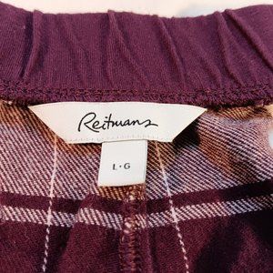 Reitmans NWOT Burgundy Plaid Cotton Sleep Lounge Pajama Pants Women's Size L