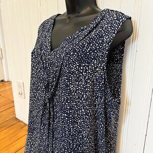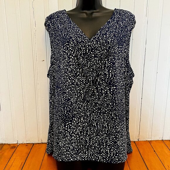 Reitman's Navy & White Self Tie Sleeveless Blouse, Size XXL