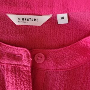 Reitmans Pink Boxy Blouse with Mandarin Collar, Size 2XL