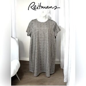 Reitmans, Plus Size Plaid Knee-Length Dress, 3X, Gray, Black