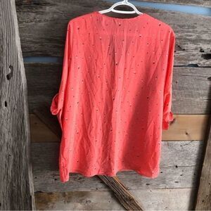 Reitmans Plus Size XXL Petite Coral Arrow Print Zipper Neck Blouse