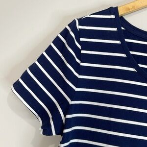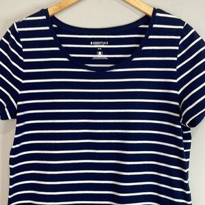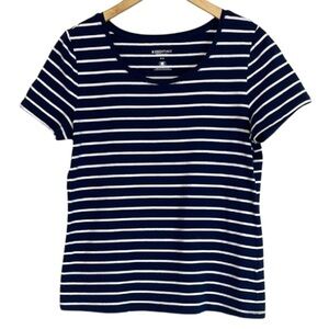 Reitmans R Essentials Striped Scoop Neck Short Sleeve T-Shirt Navy Blue White M