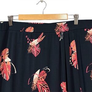 This elegant plus-size Reitmans long skirt features a captivating floral pattern, creating a striking contrast against its dark background. The skirt's flowing silhouette offers both comfort and style, making it a versatile addition to any wardrobe. Ideal for both casual outings and dressier occasions. Like new π / π / stretch, soft